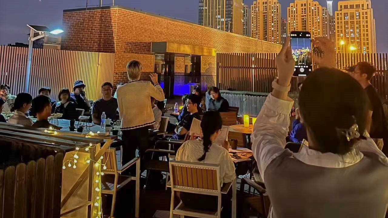 津投广场携手天津医科大学的的学术创客,共同打造了一场别开生面的学术酒吧社群活动。在轻松愉悦的氛围中,学术酒吧的主理人与高校青年围坐天台进行跨界交流,日暮余晖与天南大交相辉映,夜幕降临思想的火花在觥筹交错间碰撞出耀眼的光芒。这不仅是一场知识的盛宴,更是学术与社交完美融合的创新尝试,为津投广场的新文化底蕴增添了靓丽的一笔
